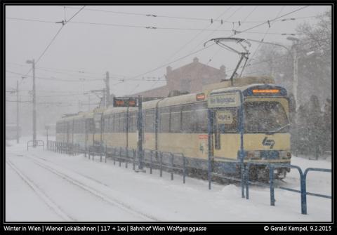 Auch die Badner Bahn zeigte sich an diesem Vormittag tief winterlicht.