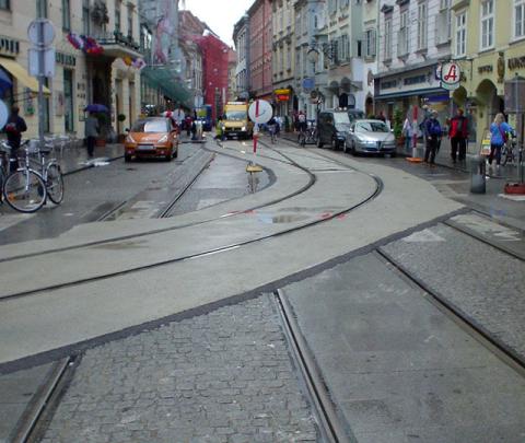 Hauptplatz 4+5: Klettergleis-Verbindung Murgasse/Sackstraße.