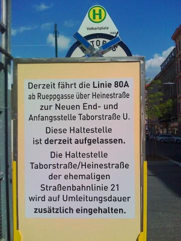 Eine Straßensperre ist daran mal nicht Schuld, ich denke bald wird er auch die Station Mühlfeldgasse (anstatt Kleine Stadtgutgasse) einhalten und komplett bis auf die Castellagasse (wo sich ee keine Station befindet) parallel zum 21er fahren...