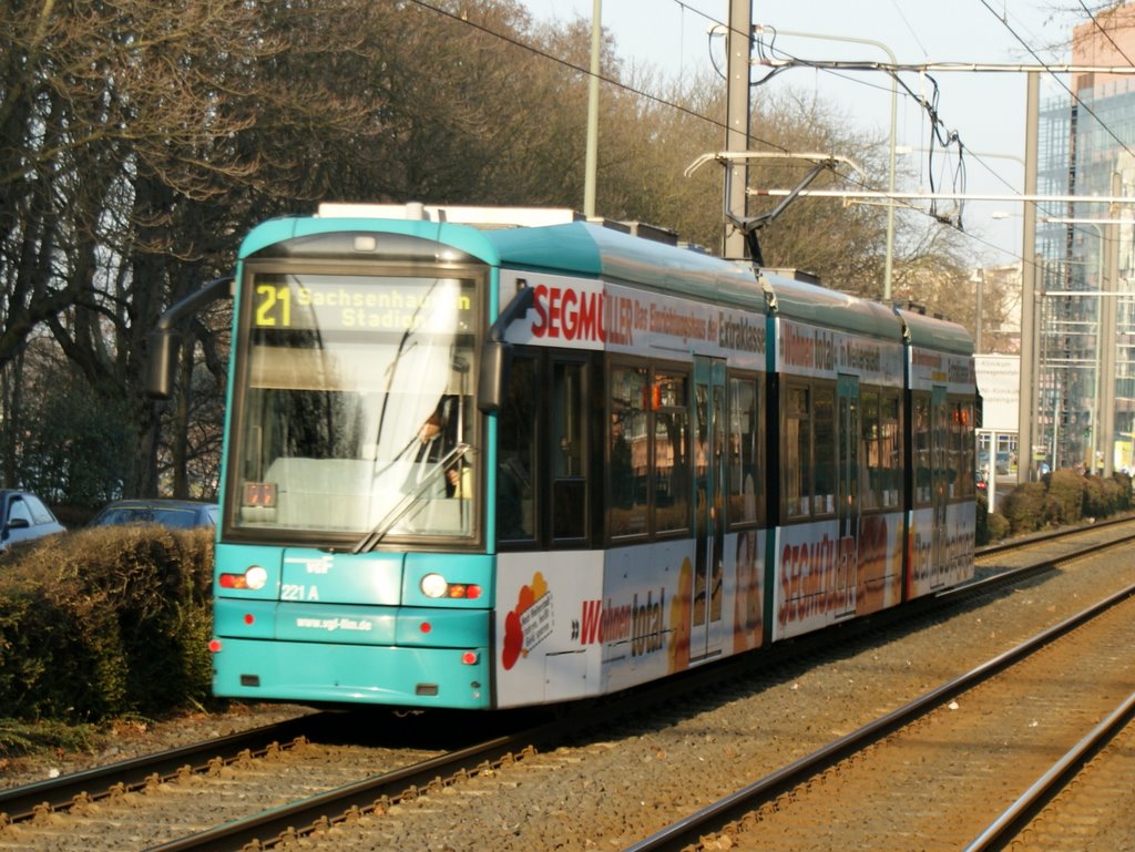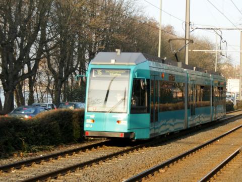 die Commerzbank-Arena, früher Waldstadion, liegt im Frankfurter Stadtwald und wird durch eine S-Bahn-Station sowie eine mit mehreren Bahnsteigen großzügig angelegte Straßenbahn-Stumpfendstelle erschlossen. Eine zeitlang war diese Strecke ohne Linienverkehr, seit einigen Jahren fährt wieder die Linie 21 planmäßig von Nied Kirche (HVZ) bzw. Mönchhofstraße über den Hauptbahnhof täglich zum Stadion - was genau die Straßenbahn dort außer dem Oberforsthaus und der ebenso wie das Stadion meist brachliegenden Rennbahn erschließen soll, ist mir unklar. Nennenswerten Ausflugsverkehr in den Stadtwald gibt es auch nur am Wochenende.
