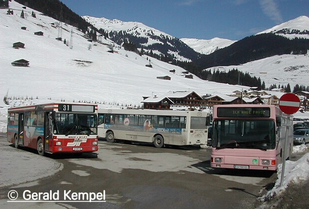 sowie rechts das "rosa Schwein", ein MAN NL 202 (ex Albus L 1472),