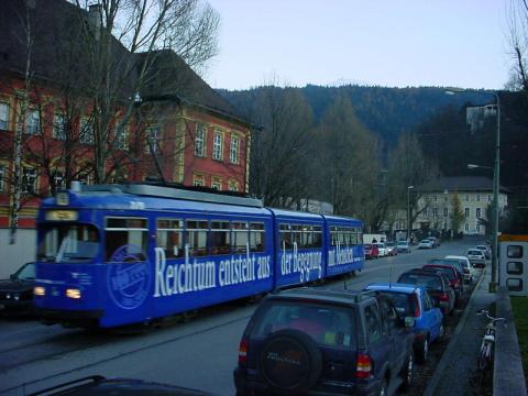 Tw 5X auf SL 6 durchfährt die Klostergasse Richtung Betriebshof, um dort zu wenden.