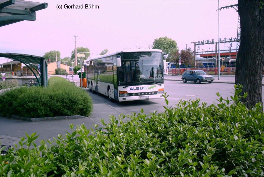 Letzte Woche war auf den VOR-Linien 332 und 333 anstatt eines DR-Dreiachsers einer von ALBUS im Einsatz. Die beiden Fotos zeigen den Bus beim Bahnhof in Stockerau.