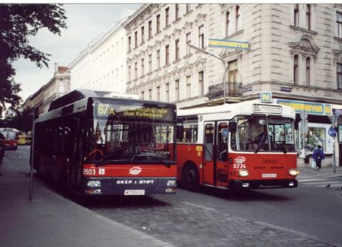 NL 8503(67A) wird am Reumannplatz gerade überholt von