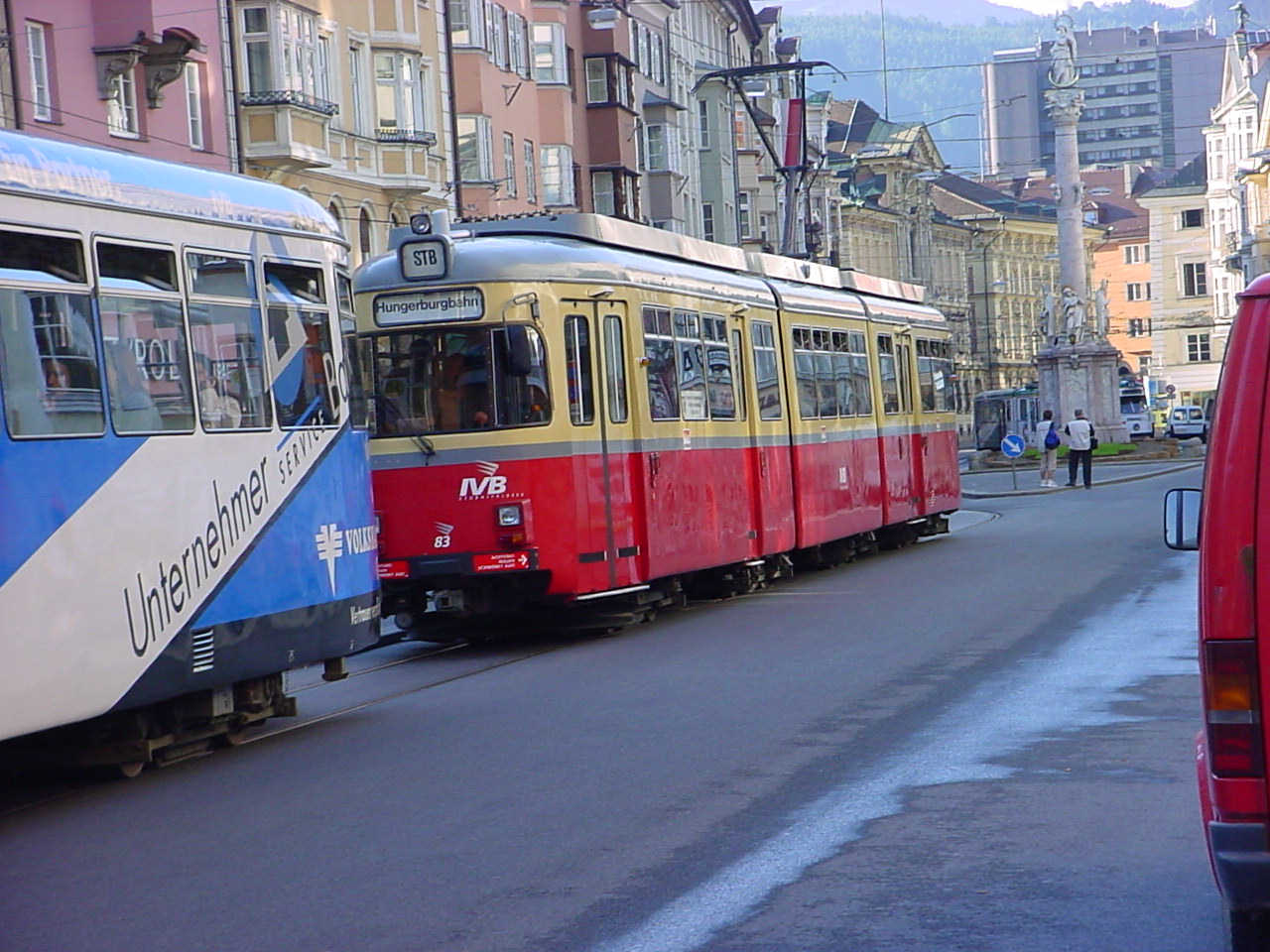 Nur derzeit zu sehen: Ein STB-Achtachser an der Annasäule.