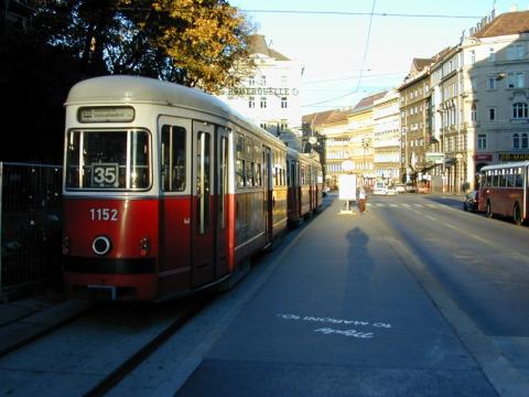 Zug der Linie 35 in der Anfangshaltestelle "Nußdorfer Straße U".