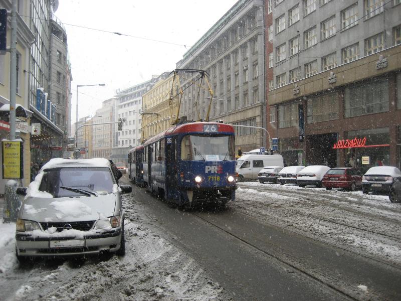 Wagen 7118 auf der Linie 26 Richtung Bahnhof Hostiva? bei der