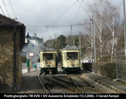 - Begegnung der Tw XVIII und XIV in der Ausweiche Schableder