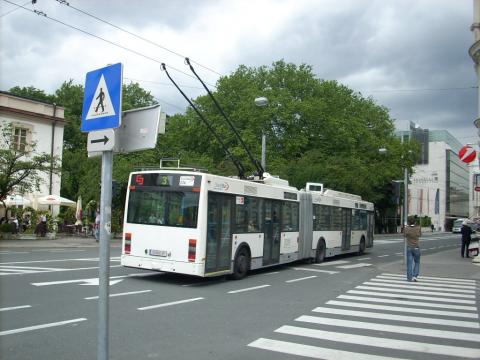 Bild 4: Ein 3er der neuesten O-Bus-Generation. Links ist das Schloss Mirabell und rechts