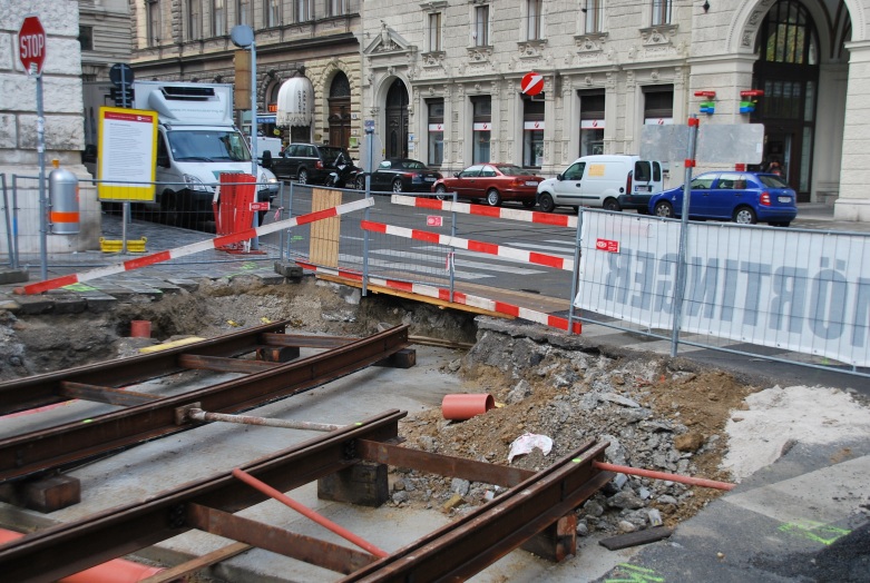 Blumeninsel am Schmerlingplatz wurde von den bösen Bauarbeitern schon zerstört.