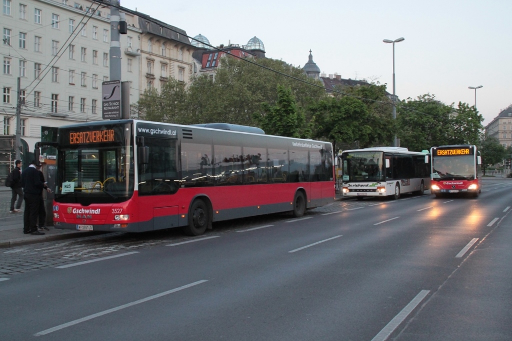 Ein N75 von Gschwindl, welcher "a la Zuklin" beschildert war, stellte sich in die N25 Haltestelle,