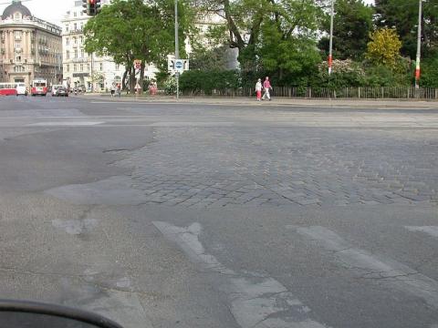 über den Platz mäandern - Der Übergang von Asphalt auf Pflaster (bei der