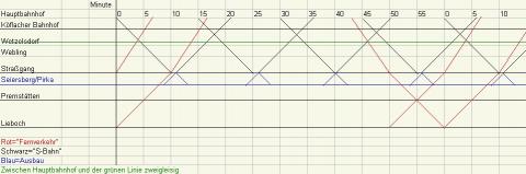 exakt zu jeder Viertelstunde am Hauptbahnhof abgefahren würde, in Straßgang