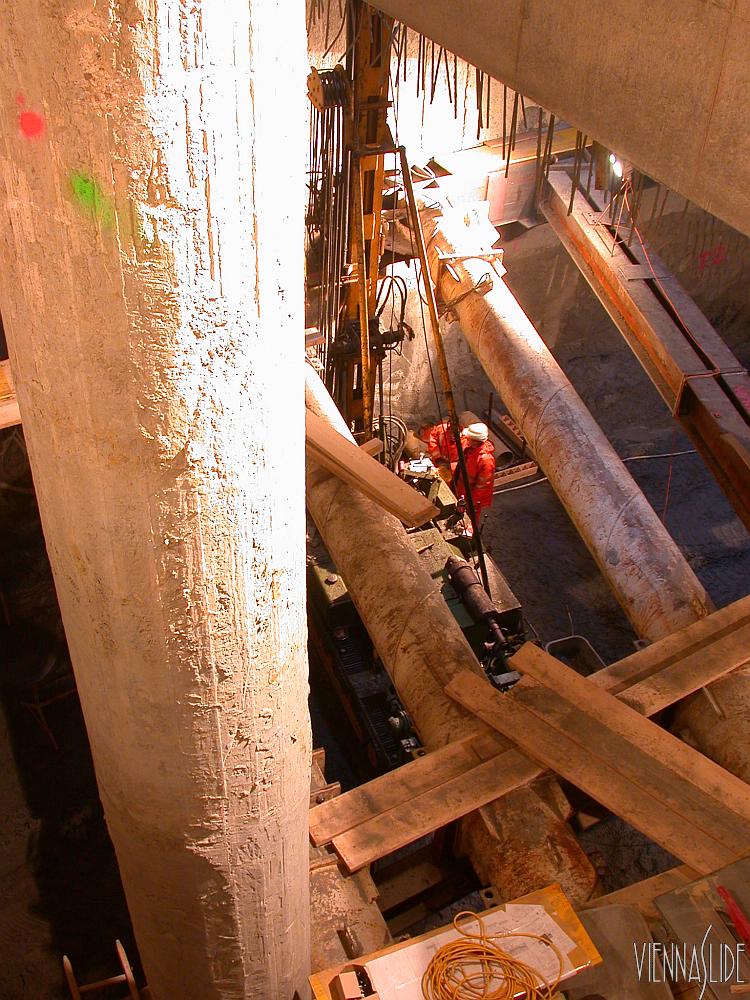 senkrechte runde Ding ist ein freigelegter Bohrpfahl, der später abgebrochen