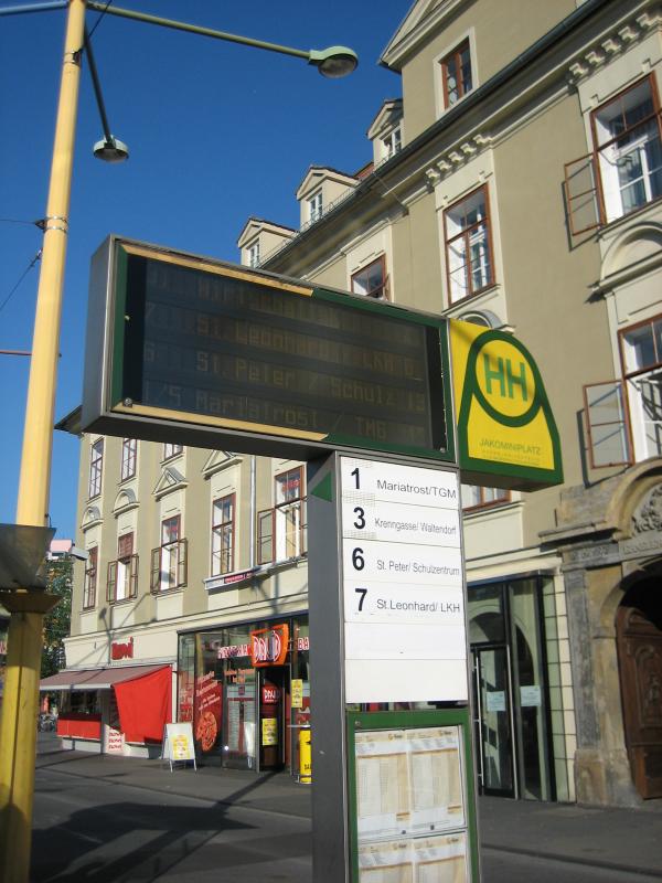 Am Jakominiplatz wurde die 31er-Haltestelle von nicht weniger als sieben