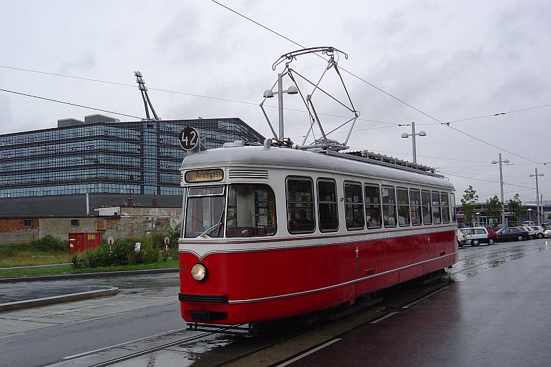 Hintergrund das t-mobile "Schiff", am anderen Foto als 71er mit Beiwagen c1