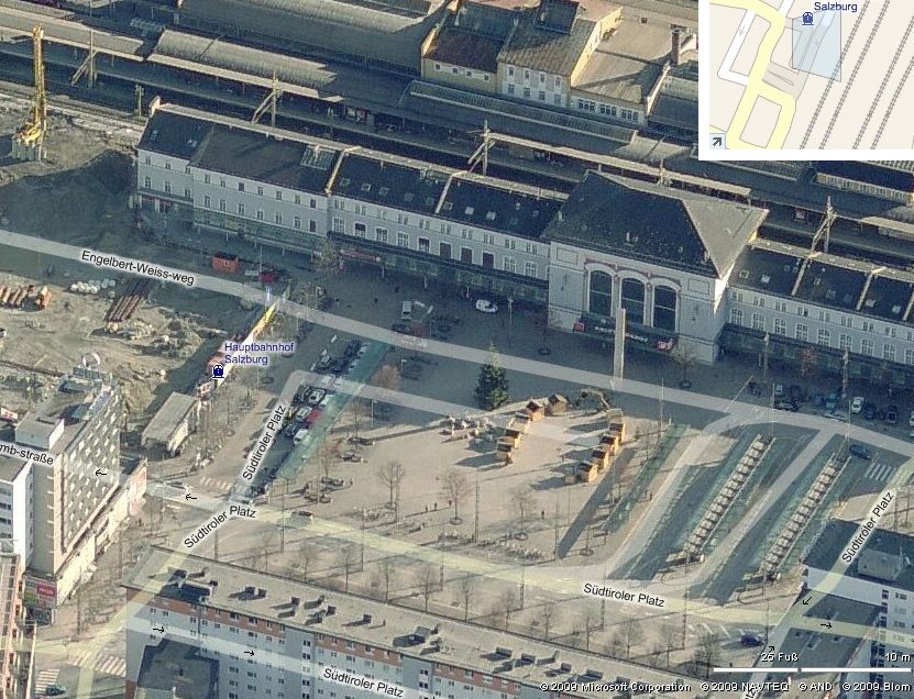 Ich hab's! Das ist der Hauptbahnhof vor dem Umbau. Die hervortretende Fassade im Hintergrund (7 Fenster breit, gelb) ist der linkeste Flügel des Hauptbahnhofes, der noch steht, der Rest ist abgerissen (vgl. Attachment, mangels eigener Kenntnisse über bing eruiert).