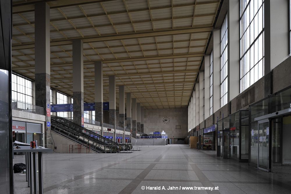 Fahrkartenschalter eingebaut. An der rechten Schmalseite der Halle befindet