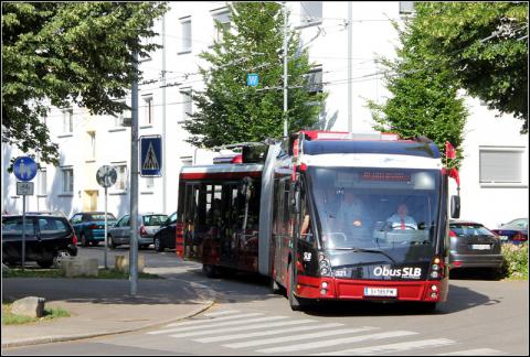 der neue Solaris Trollino 18 Metrostyle angereist. Der Salzburger Wagen 321