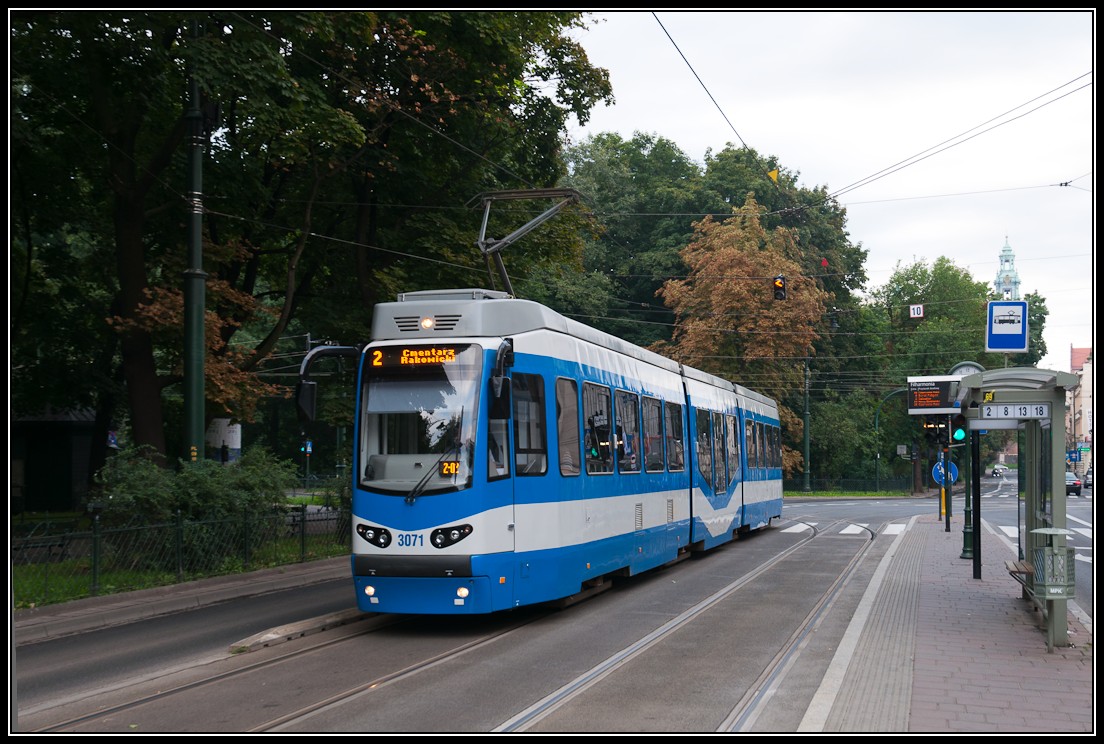 blauen Straßenbahnen in Krakau schon unaufhaltsam ihre Runden. Vom Hotel