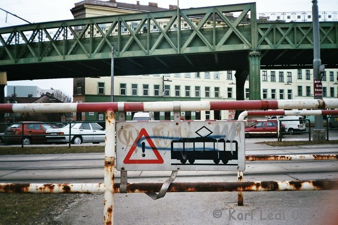 "verhunzte" Verkherschild und im Hintergrund die Otto-Wagner Brücke und beim zweiten