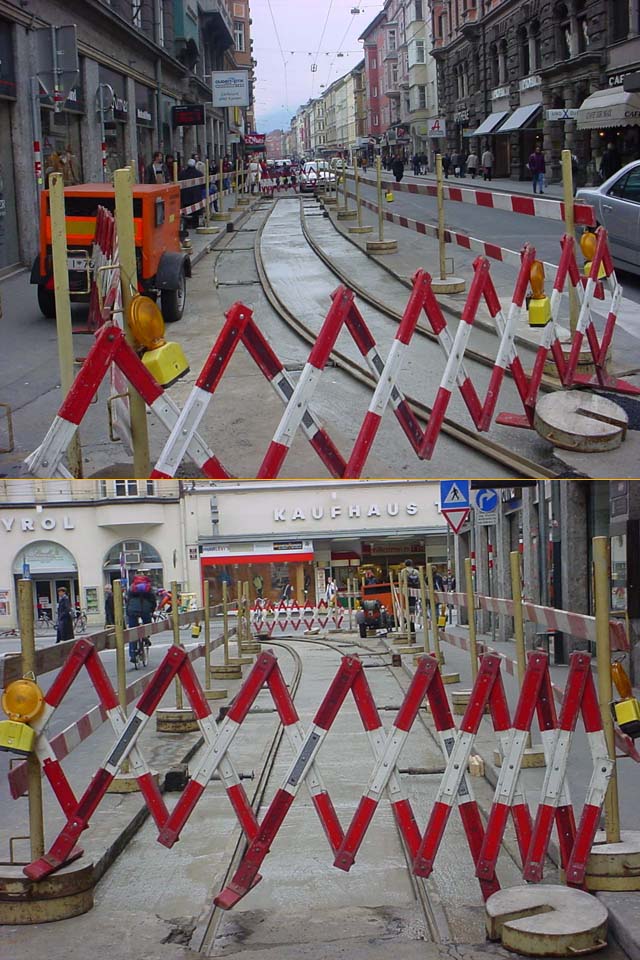 Der Abschnitt Anichstraße, wo dann wieder südseitig Gleise verlegt bzw.ausgegraben werden, wird laut Tramkonzept jedoch erst ab 2008 gebaut; welchen Zweck könnte diese Baustelle also haben? Hat irgend jemand eine Idee?