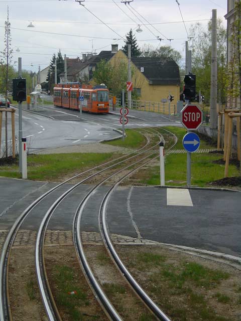 Die Fotos 46 und 49 zeigen den TW 48 bei der Gleisverschlingung in Ebelsberg