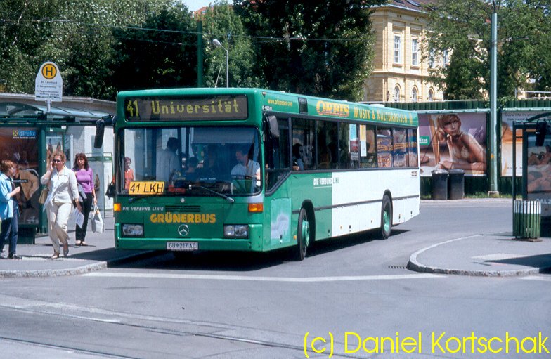 Bild 1 zeigt einen Mercedes O405N von Grünerbus als Linien 41 in St.Leonhard