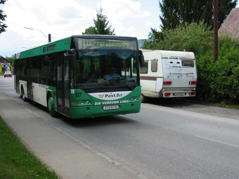 Bus 827 der Post und CR 660 in der Schleife LKH;