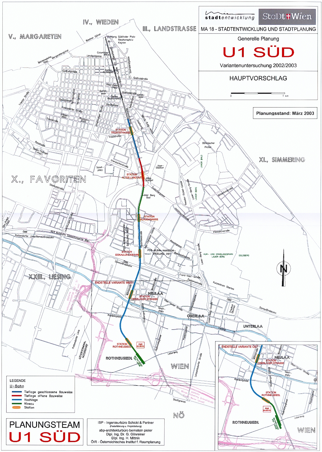 Nun steht die Hauptvariante der U1 Süd fest. Anbei der eingescannte Plan