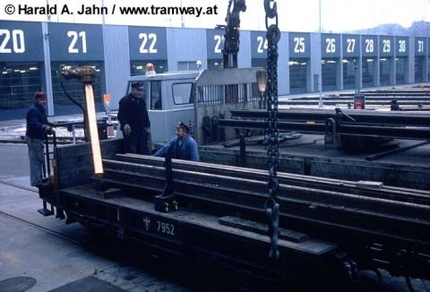 mit Schienen beladen.