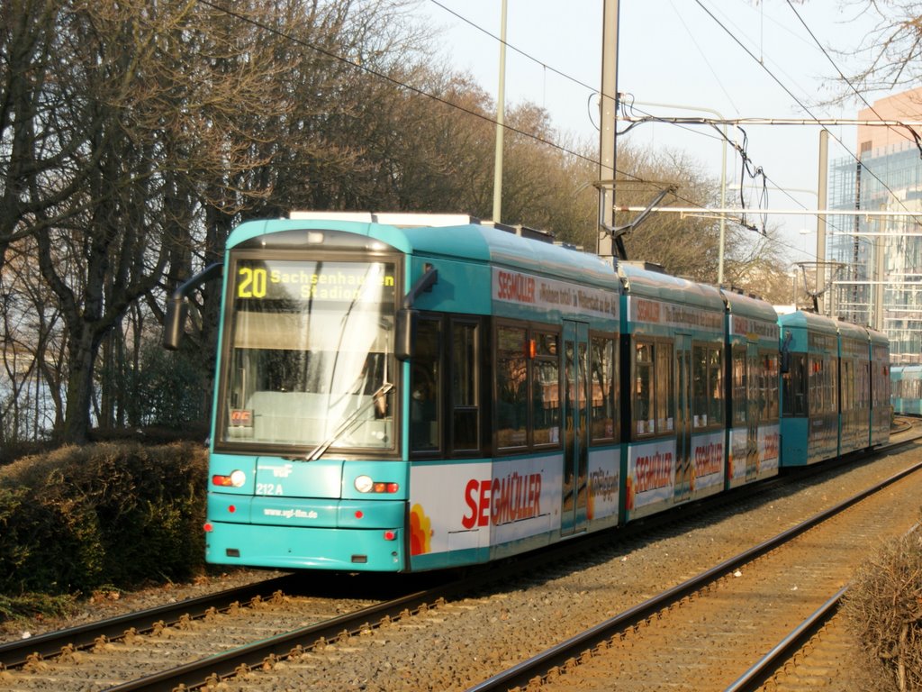 die Commerzbank-Arena, früher Waldstadion, liegt im Frankfurter Stadtwald und wird durch eine S-Bahn-Station sowie eine mit mehreren Bahnsteigen großzügig angelegte Straßenbahn-Stumpfendstelle erschlossen. Eine zeitlang war diese Strecke ohne Linienverkehr, seit einigen Jahren fährt wieder die Linie 21 planmäßig von Nied Kirche (HVZ) bzw. Mönchhofstraße über den Hauptbahnhof täglich zum Stadion - was genau die Straßenbahn dort außer dem Oberforsthaus und der ebenso wie das Stadion meist brachliegenden Rennbahn erschließen soll, ist mir unklar. Nennenswerten Ausflugsverkehr in den Stadtwald gibt es auch nur am Wochenende.