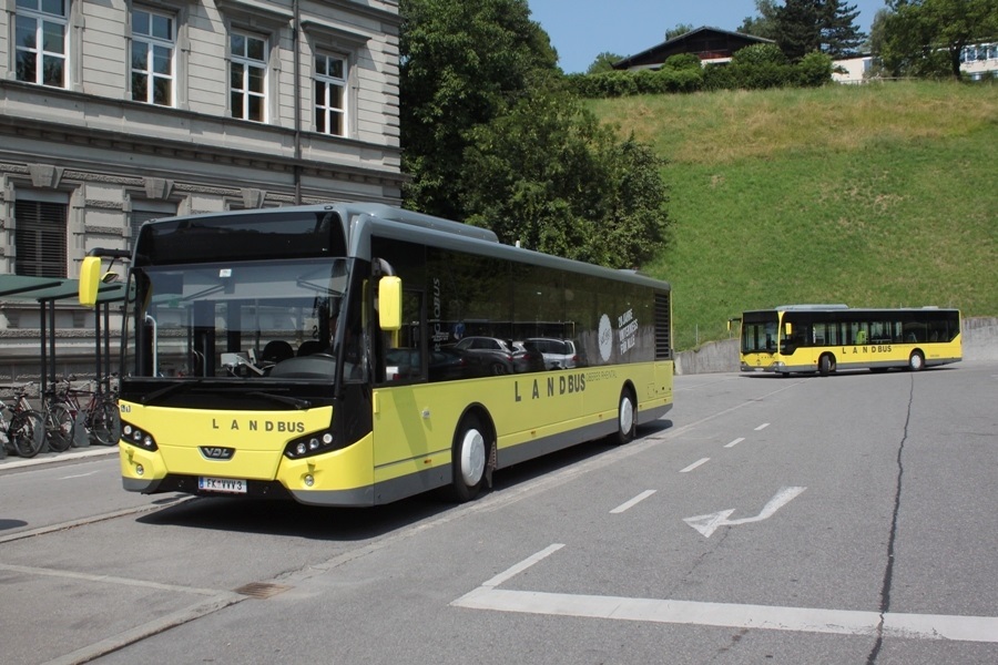 Alle tragen fast die selbe Lackierung, in Feldkirch ist das gelb etwas dünkler, manche Überlandbusse haben