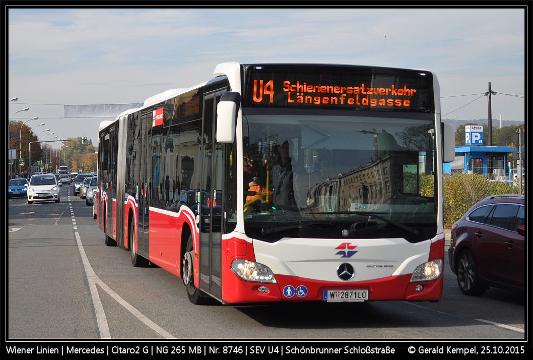 - 8746 an der Kreuzung Schönbrunner Schloßstraße#Grünbergstraße. Es ist ein "Spetter-Bus" mit richtigem Liniensignal