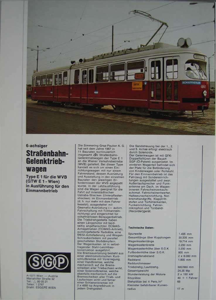 In meinem Fundus befindet sich auch ein Datenblatt des Wiener E1 von SGP.