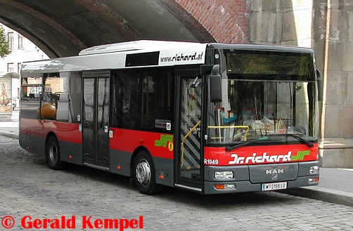 Auf dem Foto sieht man den Bus R 1049 bei der Vorortelinie