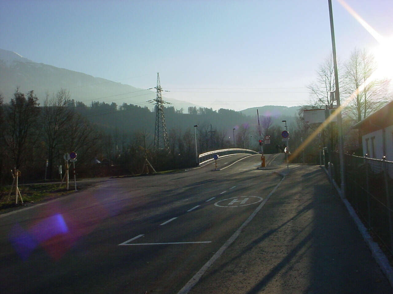 Die neueröffnete "New-Orleans-Brücke" der Linie T mit aus unerfindlichen Gründen geöffneter Schrankenanlage.