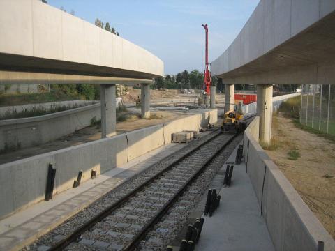 fertig liegen. Das dritte, abgesenkte Gleis ist die Verbindung durch den