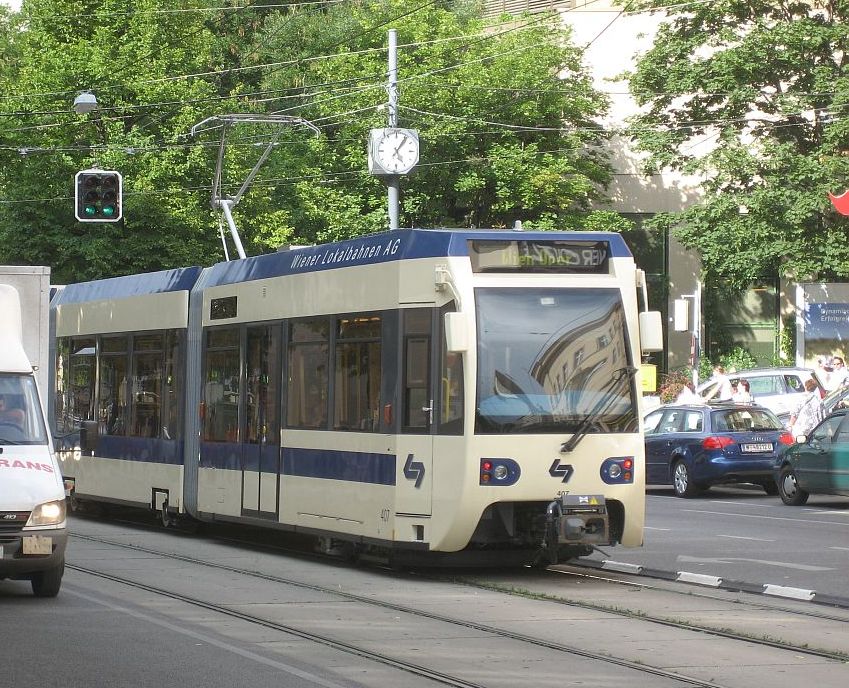 > Badner Bahn zu meiner großen Verwunderung Triebwagen 409 als Wiener