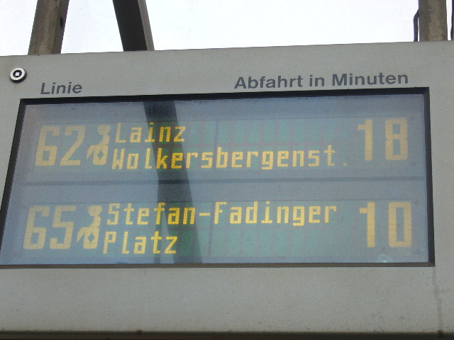 >Heute habe ich auf der Anzeige bei der Haltestelle Landstraße eine