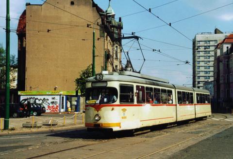 Der einzige noch im Düsseldorfer Originallack verkehrende GT8 ist der Wagen