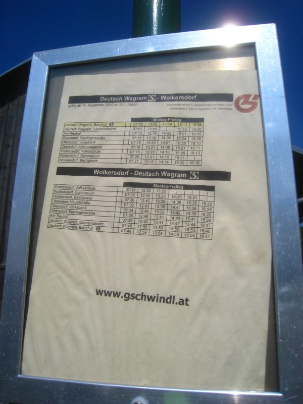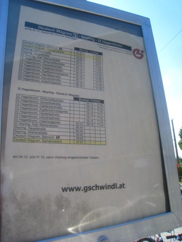 Stimmt, das war auch so ein Fall. (Weiß jemand, ob Pletter an den 270er-Haltestellen jetzt endlich die Fahrpläne entfernt hat? Die Linie wurde zwar vor vielen Jahren eingestellt, aber bis vor ca. einem halben Jahr waren die Haltestellen in Vösendorf noch samt Fahrplan vorhanden...)