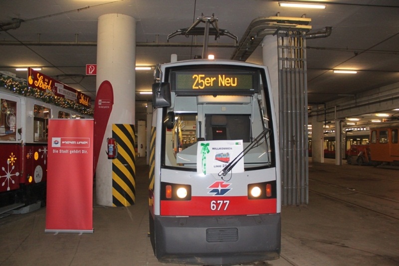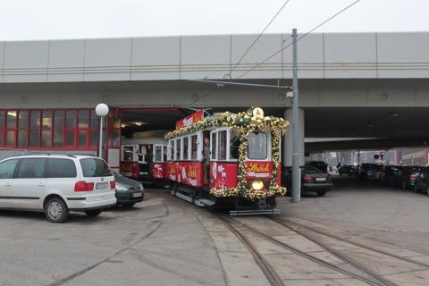 aus dem Bahnhof Kagran, gefolgt von der Ströck Weihnachtsbim.