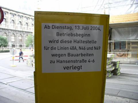 Bei der Haltestelle von 46, 48A und 49A sind Hinweistafeln aufgestellt, auch
