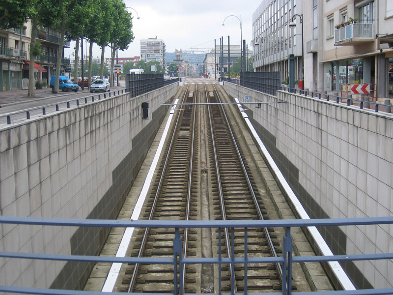 Hier sieht man die Rampe, die die Trasse kurz vor der Brücke an die
