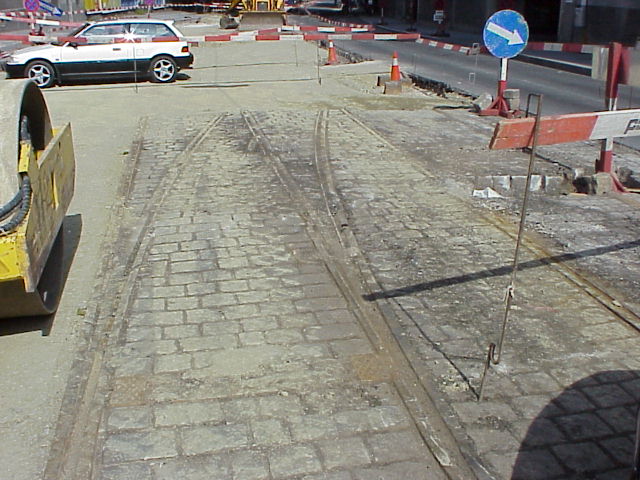 Schienen von der Kuppelendstelle vom 106er in der Krausegasse am 27.5.2000.