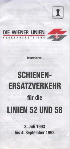 Soeben habe ich beim Ausmisten das Infoblatt zum SEV der Linien 52 und 58 aus dem Jahr 1993 gefunden.