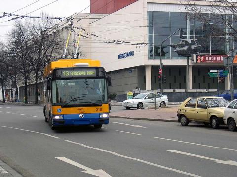 Trol_5 einen Wagen des gleichen Typs auf dem Platz der Arbeit (Námìstí
