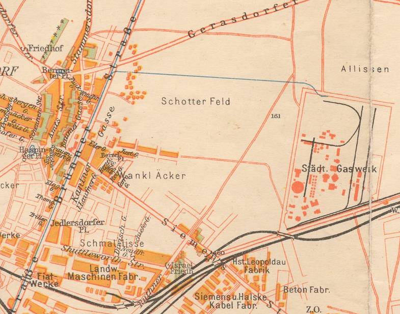 Ecke des Gasweksgelände eingebogen. Das Gleis existierte von 1917 bis 1932 und