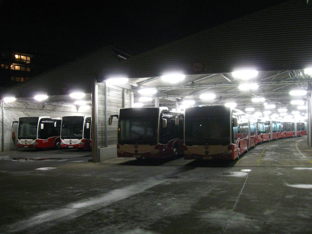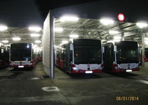 Am 6.1.2014 konnte ich bereits die ersten neuen Citaro G, bereitgestellt in der Garage Spetterbrücke aufnehmen.